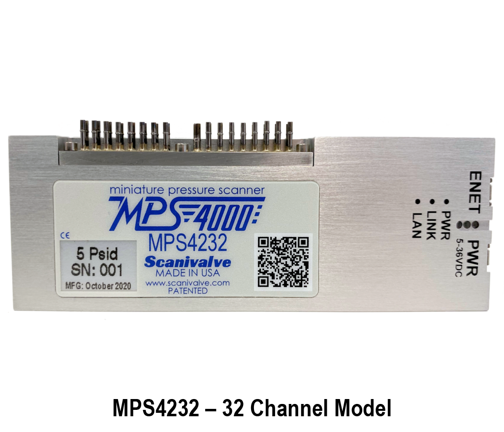 The MPS4200 is a 16 or 32 channel miniature ethernet pressure scanner representing the forefront of pressure measurement technology. The MPS4200 electronic pressure scanning module is specifically designed for use in wind tunnel and flight test applications where operational conditions are very space constrained and pressures do not exceed 100 psi. It has a very small footprint, TCP/IP connectivity, IEEE1588 support, and a wealth of other innovative features.