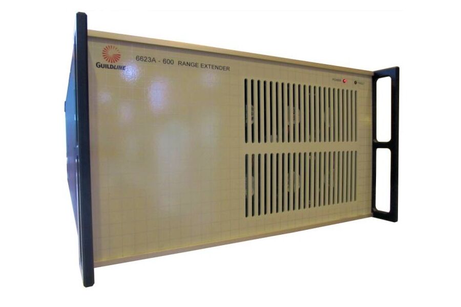 Guildline Instruments 6623 DCC Bridge Range Extender is a high current adapter, including an integral reversing switch, designed specifically for use with the 6675A or 9975 Direct Current Comparator bridges. The 6623 allows currents of up to 100 Amperes to pass through the resistor under test.