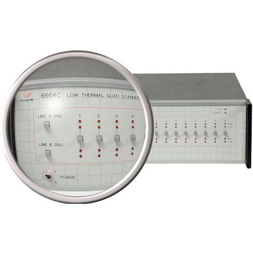 Guildline’s 6664C Low Thermal Quad Scanner is the first commercial scanner capable of operating at 1000V. This has greatly improved the measurement/calibration throughput of standards laboratories, since many high ohm measurements can now be automated.